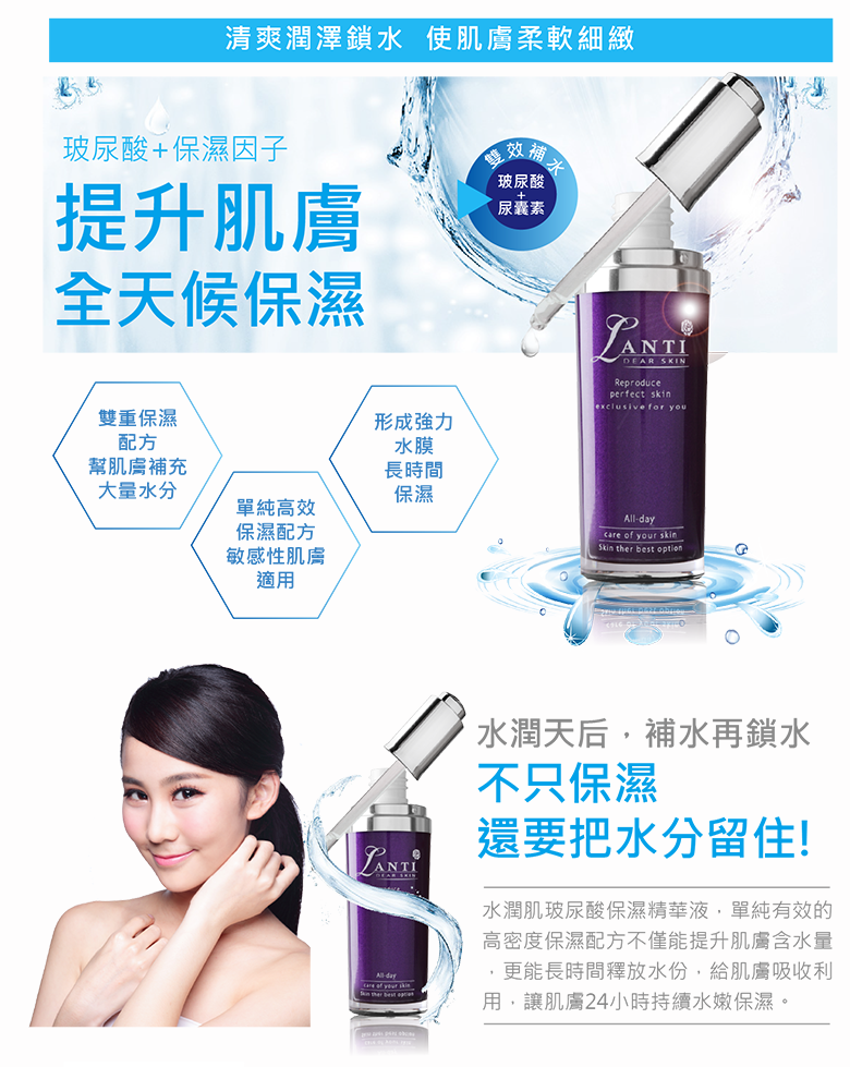 ◆商品名稱: Lanti水潤肌玻尿酸保濕精華液