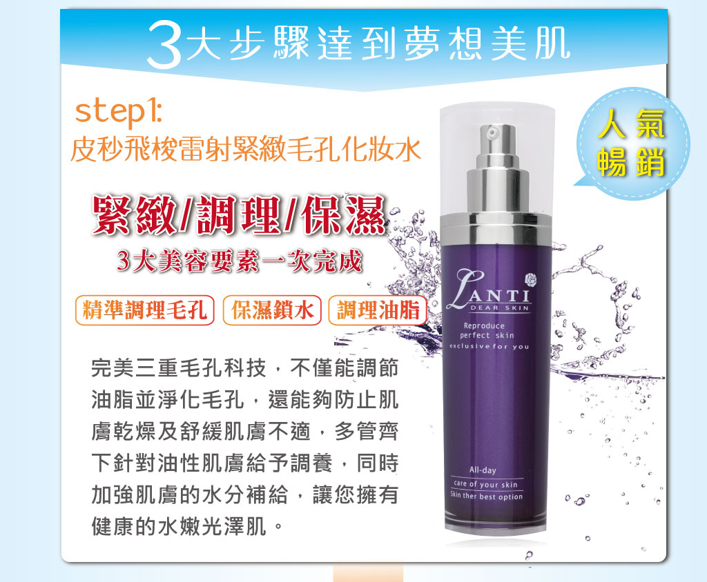 ◆商品名稱: Lanti皮秒飛梭雷射緊緻毛孔化妝水