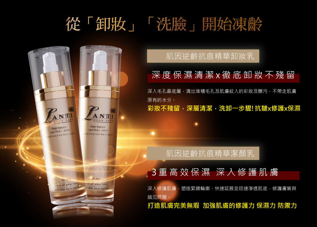 ◆商品名稱: Lanti肌因逆齡抗痕精華卸妝乳
